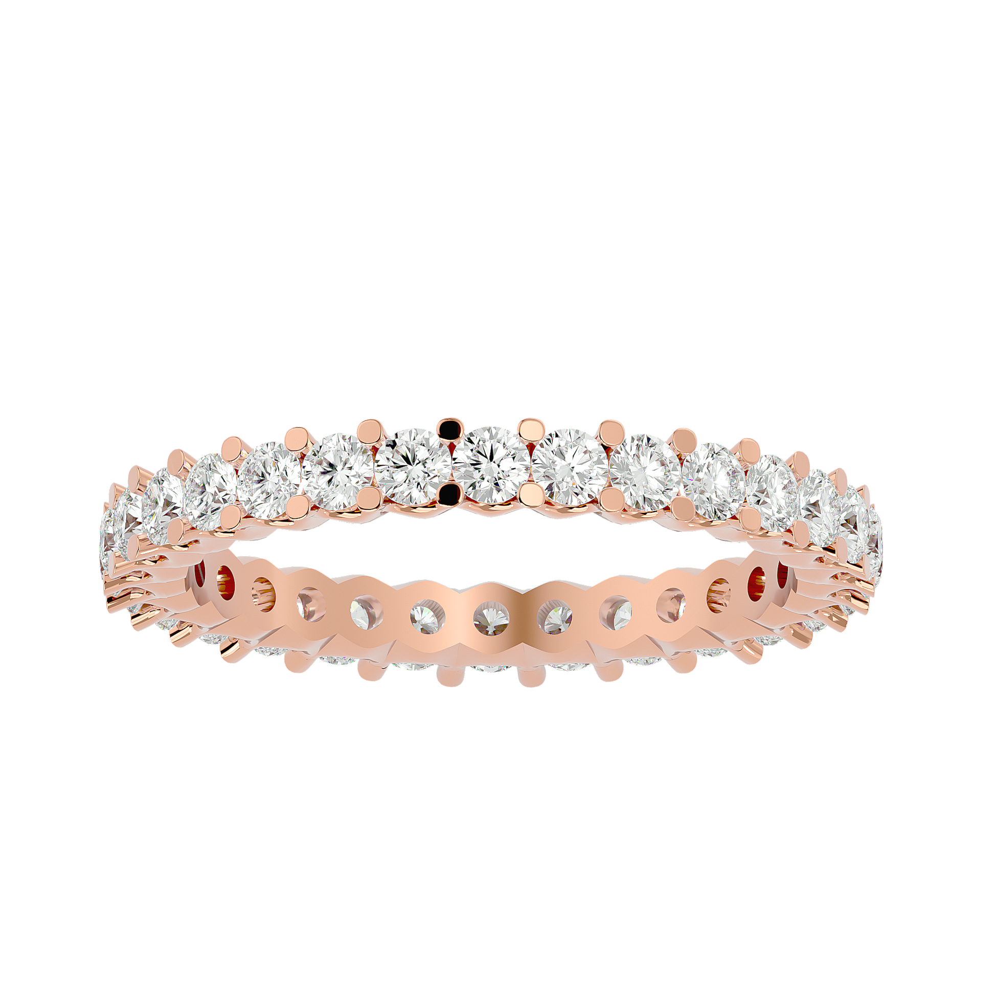 Experience the warm, celestial glow of Astrid’s Embrace — a refined fusion of starlit elegance and contemporary fine-jewelry craftsmanship. Fashioned in radiant 18 kt (or 14 kt) rose gold, this eternity band showcases 0.3 ct of hand-selected, precision-cut diamonds arranged in a seamless, continuous circle. Each stone is prong-set with meticulous care, forming a clean, sculptural silhouette, while the softly blushed rose-gold finish enhances every facet with a gentle, astral-inspired radiance.