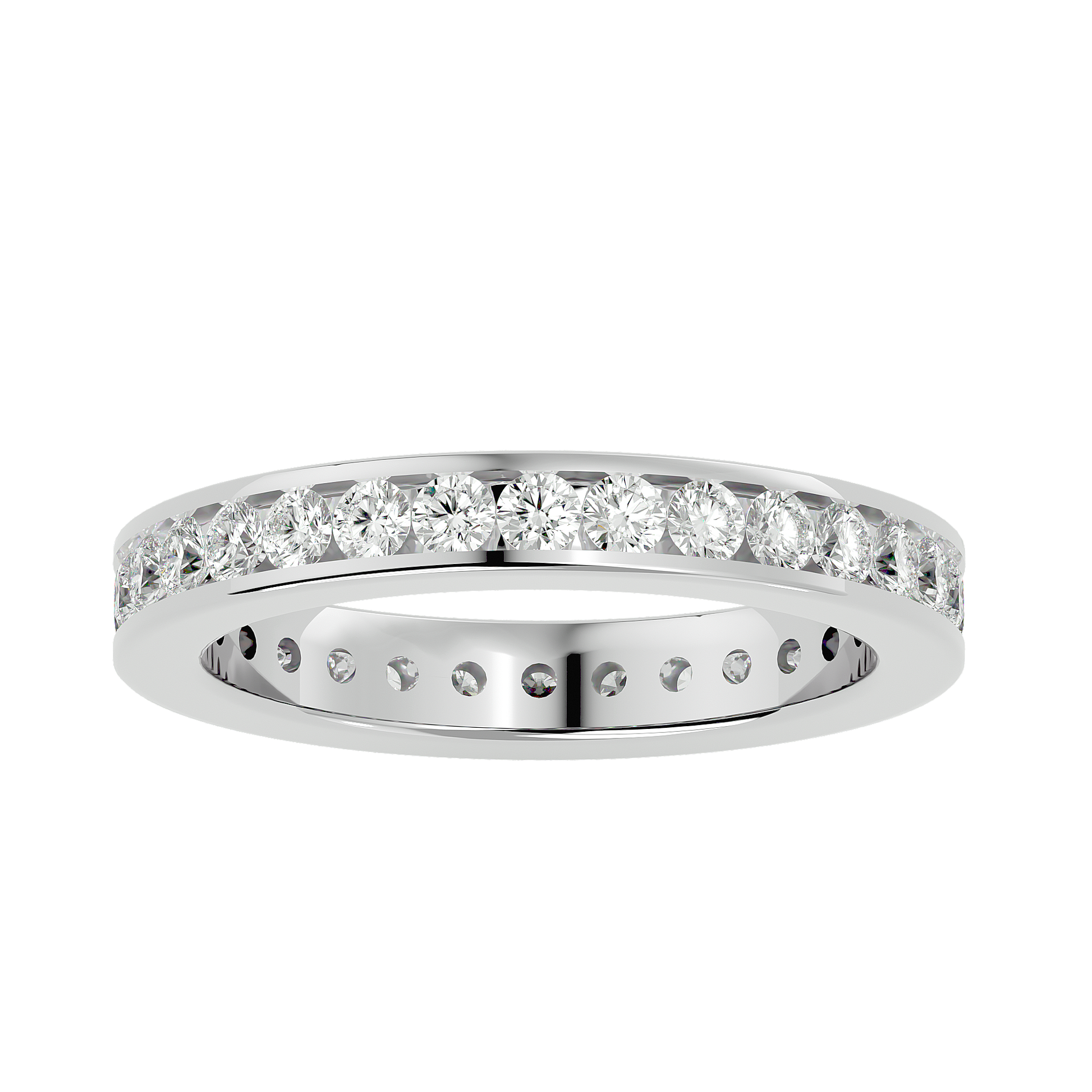 Experience the luminous beauty of Aurora’s Promise — a refined harmony of celestial radiance and modern fine-jewelry craftsmanship. Fashioned in radiant 18 kt (or 14 kt) white gold, this eternity band showcases 0.3 ct of hand-selected, precision-cut diamonds arranged in a flawless, continuous circle. Each stone is prong-set with meticulous care, forming a clean, sculptural silhouette, while the polished white-gold finish enhances every facet with a soft, dawn-inspired glow.