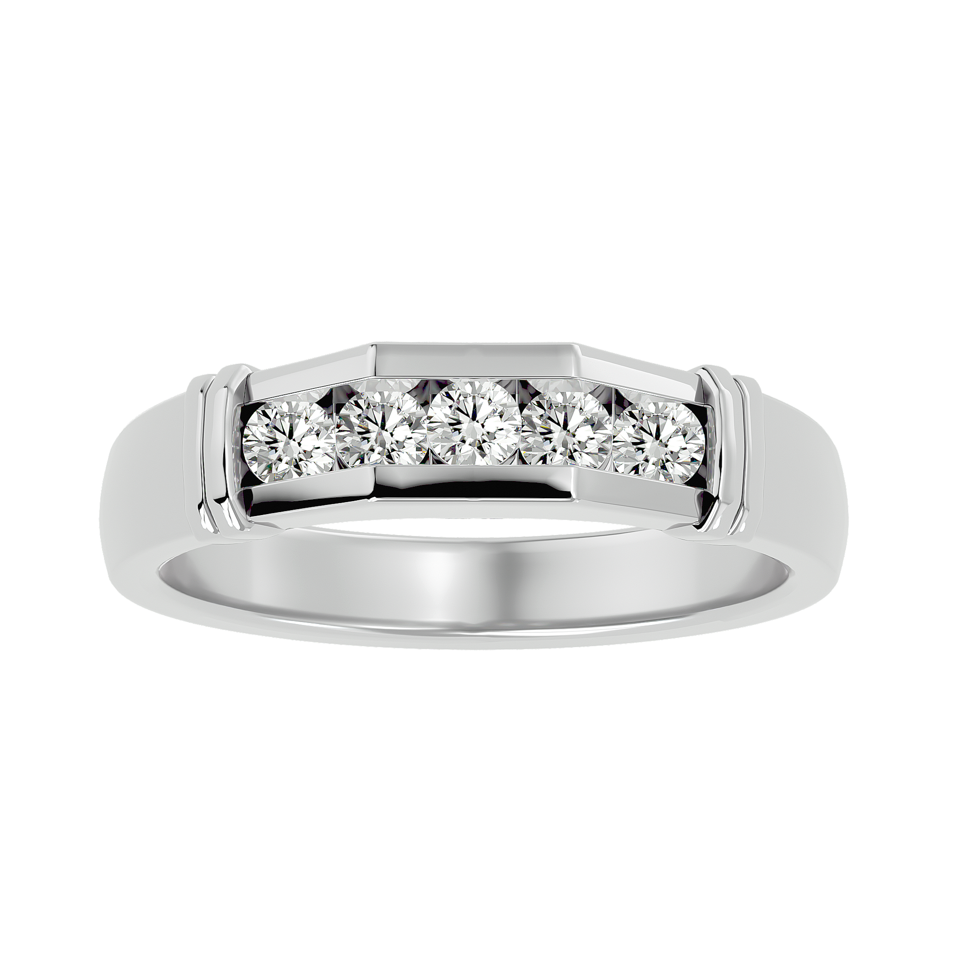 Experience the radiant grace of the Celestial Regent Ring — a refined harmony of cosmic elegance and modern fine-jewelry craftsmanship. Fashioned in luminous 18 kt (or 14 kt) white gold, this eternity band features 0.3 ct of expertly chosen, precision-cut diamonds set in a perfect, unbroken circle. Each stone is prong-set with meticulous care, forming a clean architectural contour, while the polished white-gold surface enhances every facet for a bright, celestial-inspired sparkle.
