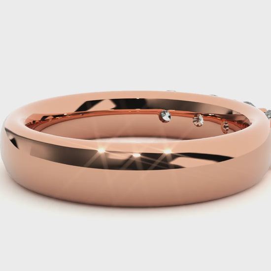 Experience the warm, moonlit poetry of Crescent Lyric — a refined fusion of lyrical elegance and contemporary fine-jewelry craftsmanship. Fashioned in radiant 18 kt (or 14 kt) rose gold, this eternity band features 0.3 ct of hand-selected, precision-cut diamonds arranged in a seamless, continuous circle. Each stone is prong-set with meticulous care, creating a clean, sculptural silhouette, while the softly blushed rose-gold finish adds a gentle, crescent-kissed glow to every facet.