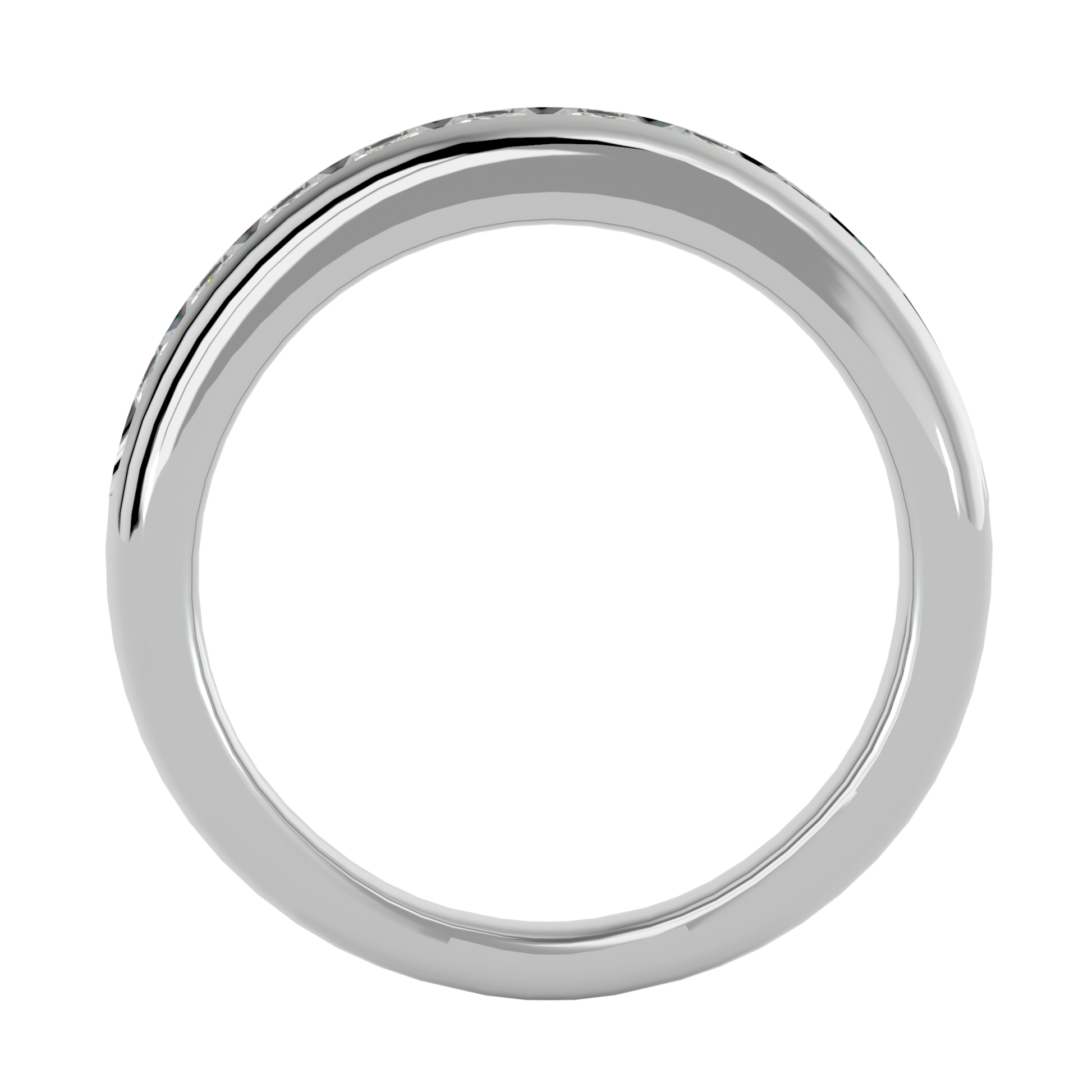 Discover the elevated brilliance of the Crowned Horizon Ring — a refined fusion of modern sophistication and timeless fine-jewelry design. Crafted in lustrous 18 kt (or 14 kt) white gold, this eternity band features 0.3 ct of carefully matched, precision-cut diamonds arranged in a flawless, uninterrupted circle. Each stone is prong-set with meticulous accuracy, creating a sleek, contemporary line, while the polished white-gold finish enhances every facet for a vivid, light-reflecting sparkle.