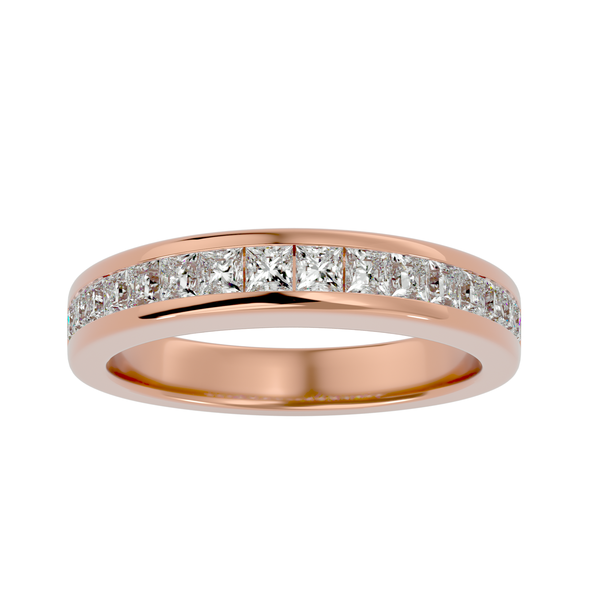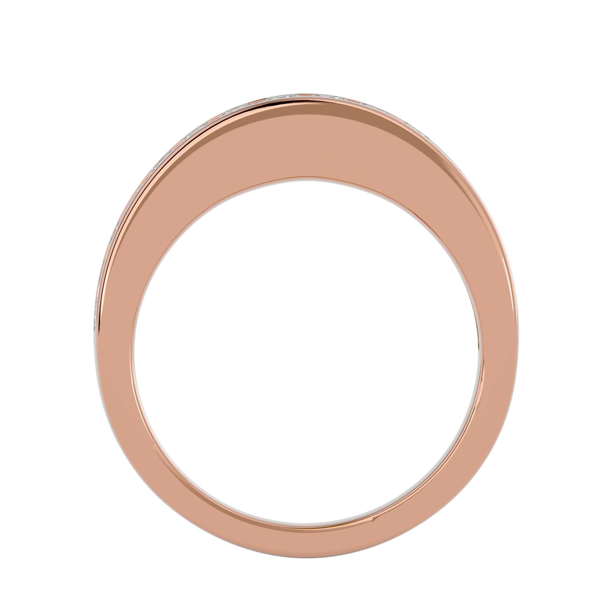 Experience the warm, celestial glow of Elysian Crestline — a refined fusion of heavenly elegance and contemporary fine-jewelry craftsmanship. Fashioned in radiant 18 kt (or 14 kt) rose gold, this eternity band showcases 0.3 ct of hand-selected, precision-cut diamonds arranged in a seamless, continuous circle. Each stone is prong-set with meticulous care, forming a clean, sculptural silhouette, while the softly blushed rose-gold finish enriches every facet with a gentle, crest-lit brilliance.