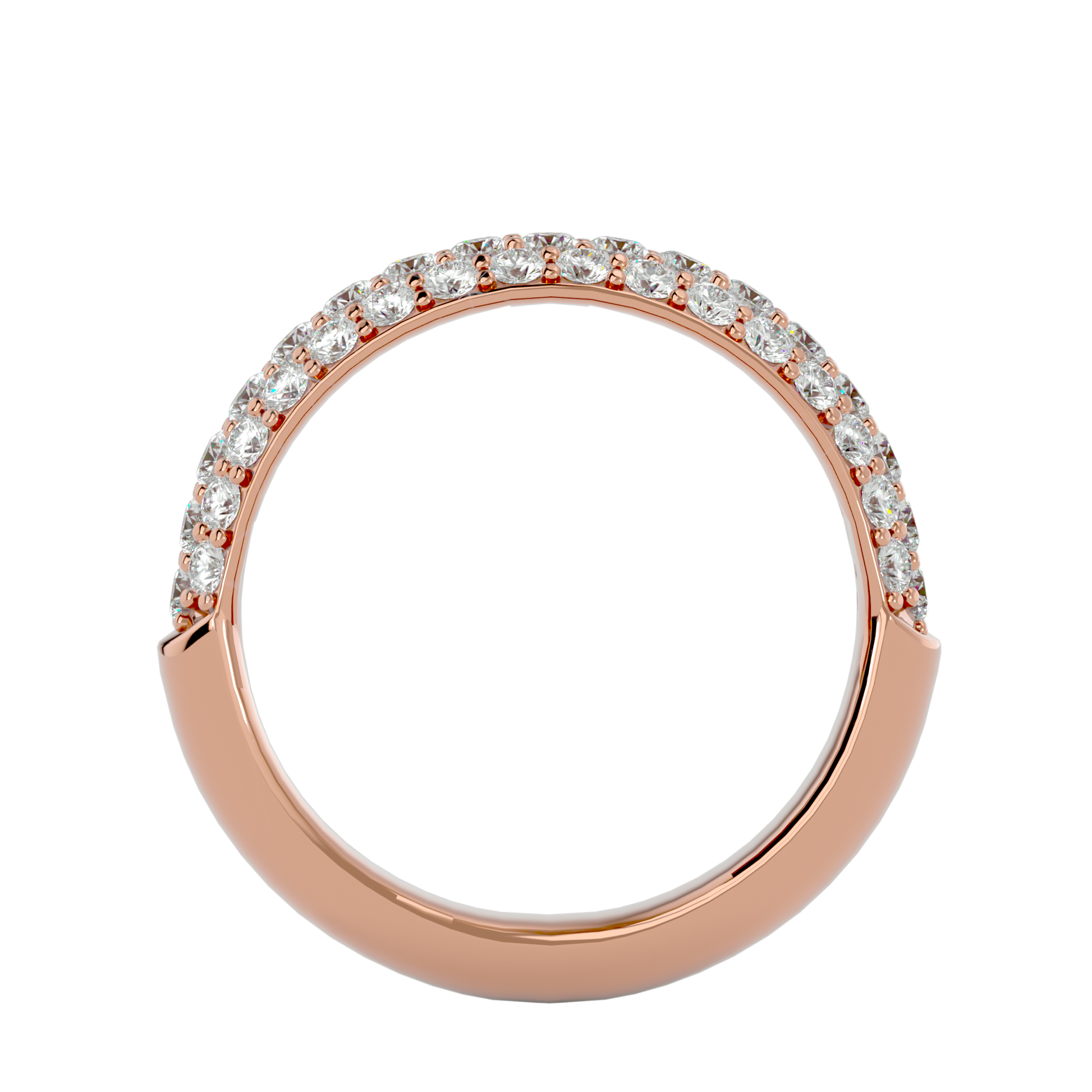 Experience the warm, sovereign glow of Eternal Sovrène — a refined fusion of regal elegance and contemporary fine-jewelry craftsmanship. Fashioned in radiant 18 kt (or 14 kt) rose gold, this eternity band showcases 0.3 ct of hand-selected, precision-cut diamonds arranged in a seamless, continuous circle. Each stone is prong-set with meticulous care, forming a clean, sculptural silhouette, while the softly blushed rose-gold finish enriches every facet with a gentle, eternally luminous brilliance.