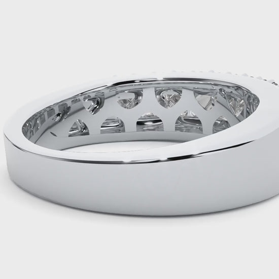 Experience the regal brilliance of Monarch Halo — a refined fusion of timeless grandeur and modern fine-jewelry craftsmanship. Crafted in radiant 18 kt (or 14 kt) white gold, this eternity band features 0.3 ct of hand-selected, precision-cut diamonds aligned in a flawless, continuous circle. Each stone is prong-set with meticulous accuracy, creating a clean, sculptural silhouette, while the polished white-gold finish enhances every facet for a bright, halo-like shimmer.