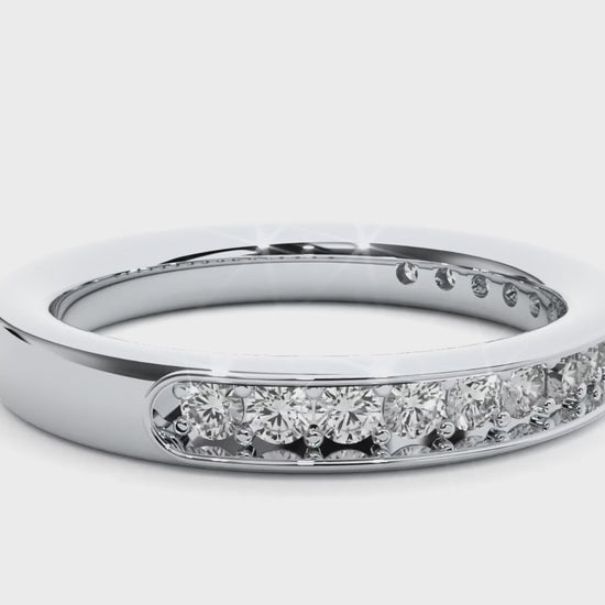 Experience the delicate brilliance of Primrose Cipher — a refined harmony of floral-inspired elegance and modern fine-jewelry craftsmanship. Fashioned in radiant 18 kt (or 14 kt) white gold, this eternity band showcases 0.3 ct of hand-selected, precision-cut diamonds arranged in a flawless, continuous circle. Each stone is prong-set with meticulous accuracy, creating a clean, sculptural silhouette, while the polished white-gold finish elevates every facet with a soft, primrose-lit glow.