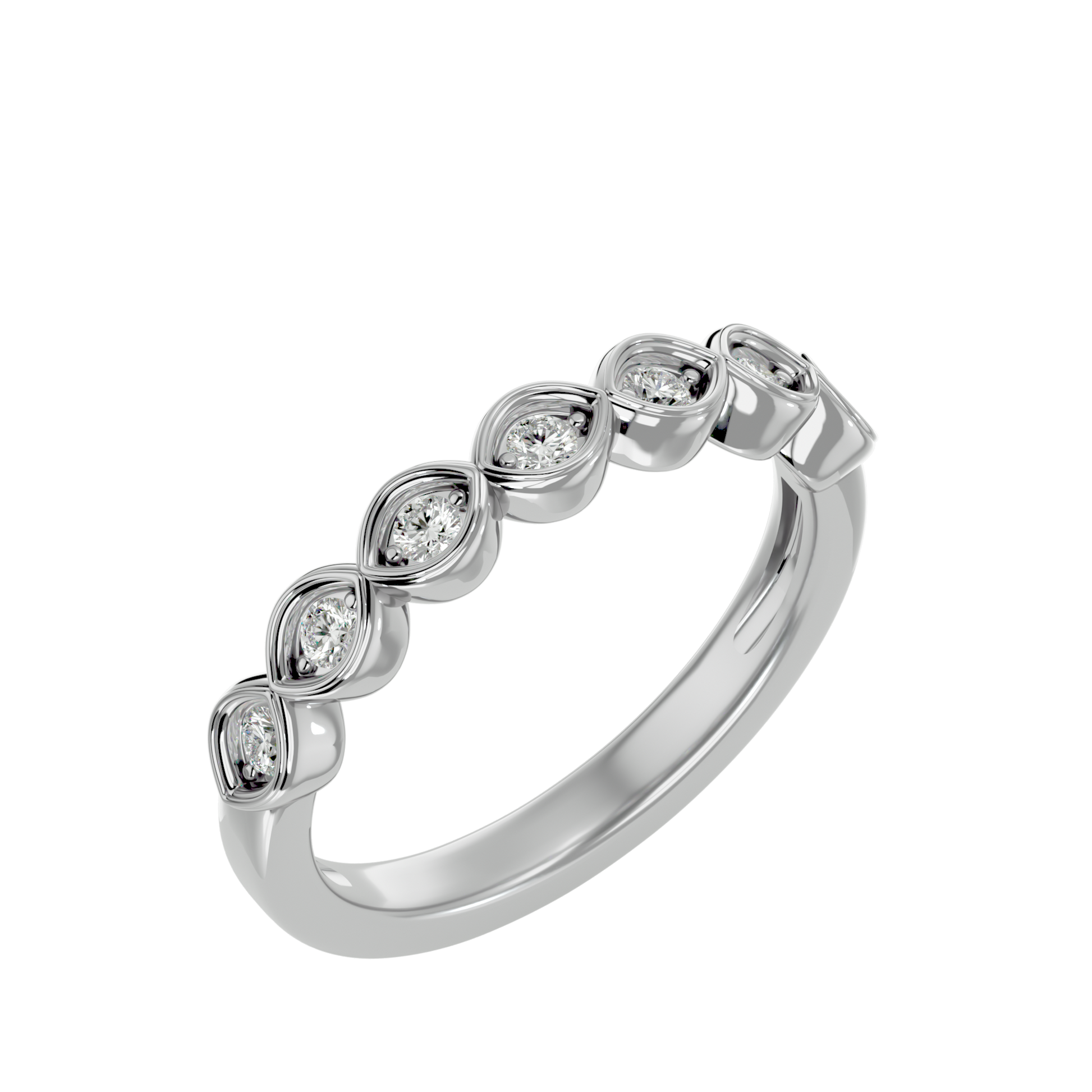 Experience the luminous elegance of the Opalcrest Band — a refined fusion of soft iridescence and contemporary fine-jewelry craftsmanship. Fashioned in radiant 18 kt (or 14 kt) white gold, this eternity ring showcases 0.3 ct of hand-selected, precision-cut diamonds arranged in a flawless, continuous circle. Each stone is prong-set with meticulous accuracy, creating a clean, sculptural silhouette, while the polished white-gold finish elevates every facet with a gentle, opalescent glow.