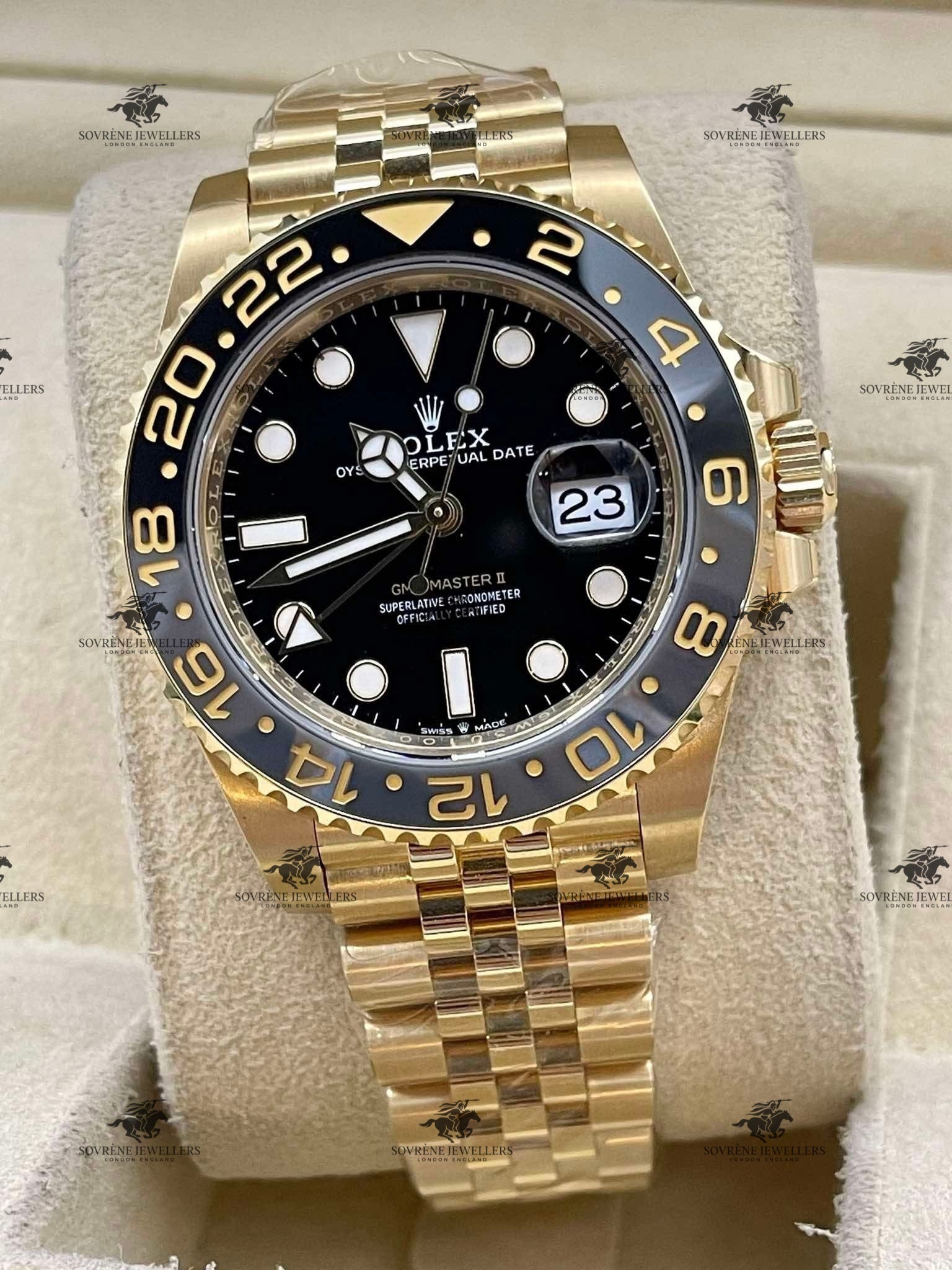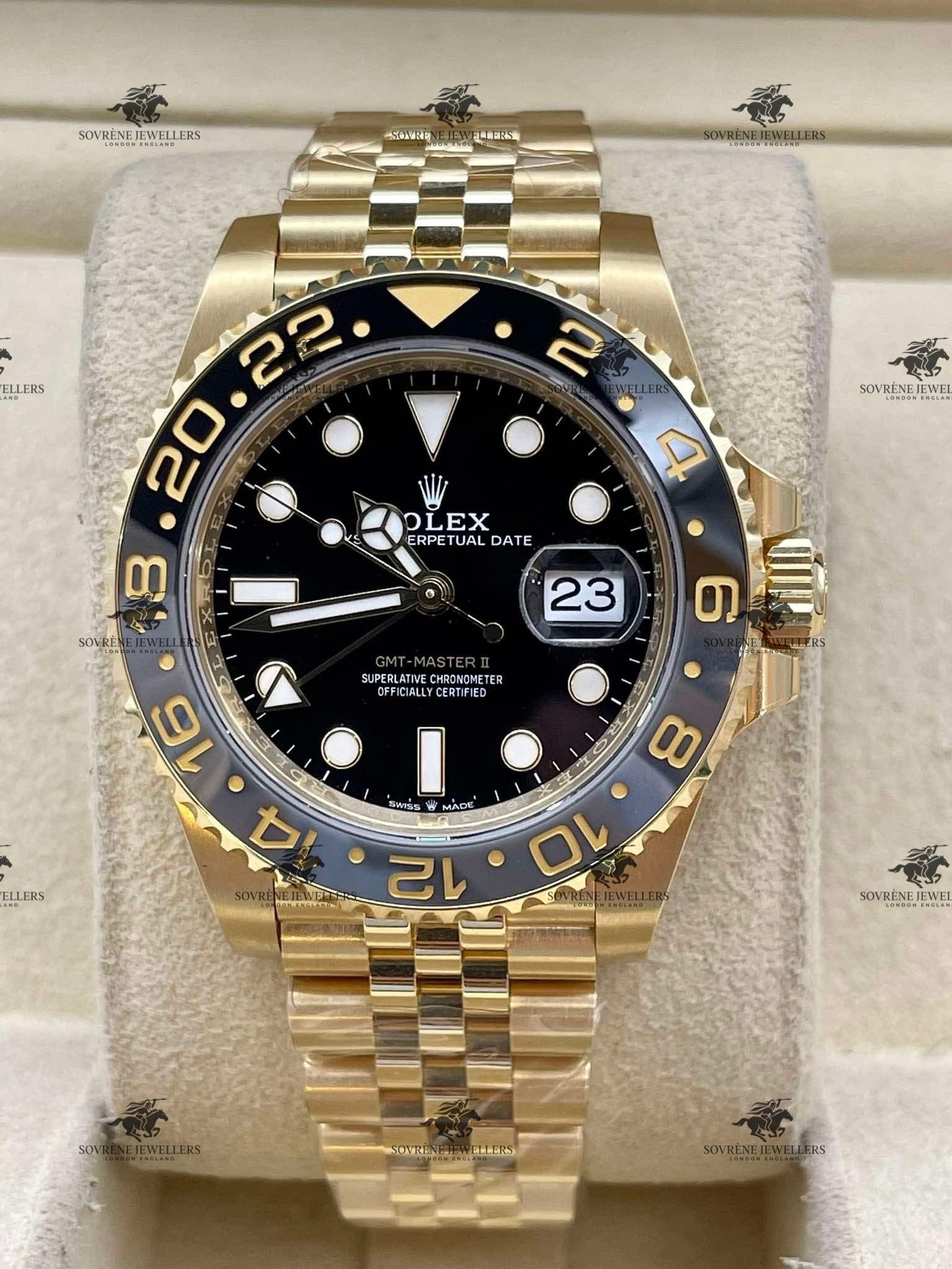 Pre-Owned Rolex GMT-Master II – 18K Yellow Gold & Black Dial 126718GRNR | Authenticated by Sovrène