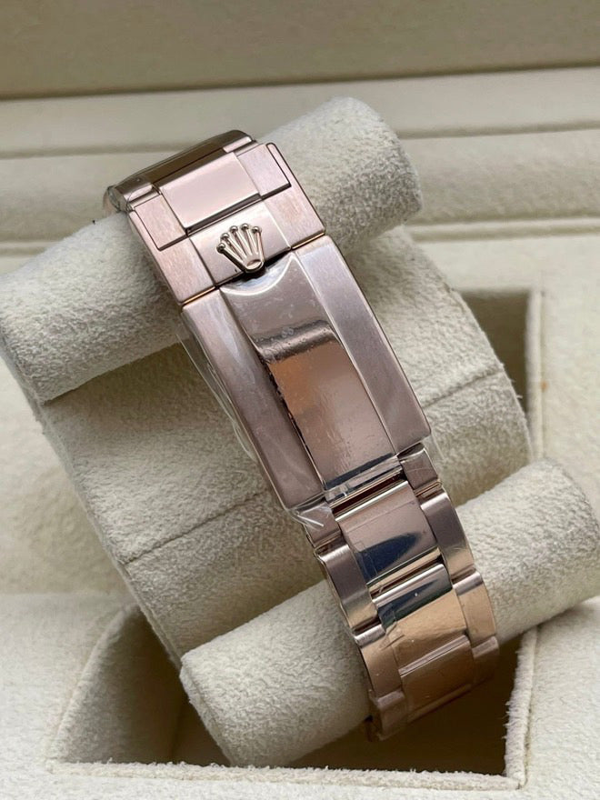 Featuring a chocolate brown dial with Everose gold sub-dials, this Daytona offers striking contrast and sophistication. Its engraved tachymeter bezel and chronograph functions provide utility, while the full gold Oyster bracelet ensures wrist presence.