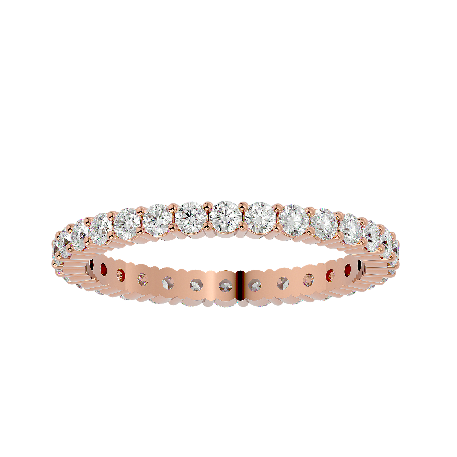 Experience the warm, vow-lit glow of Radiant Vow — a refined fusion of heartfelt elegance and contemporary fine-jewelry craftsmanship. Fashioned in luminous 18 kt (or 14 kt) rose gold, this eternity band showcases 0.3 ct of hand-selected, precision-cut diamonds arranged in a seamless, continuous circle. Each stone is prong-set with meticulous care, forming a clean, sculptural silhouette, while the softly blushed rose-gold finish enriches every facet with a gentle, promise-bright brilliance.