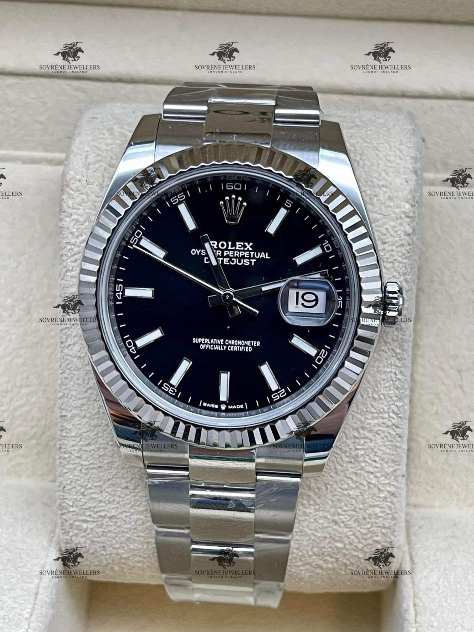 Pre Owned Rolex Datejust 41 Stainless Steel Black Dial Fluted Bezel Ref 126334 | Authenticated by Sovrène