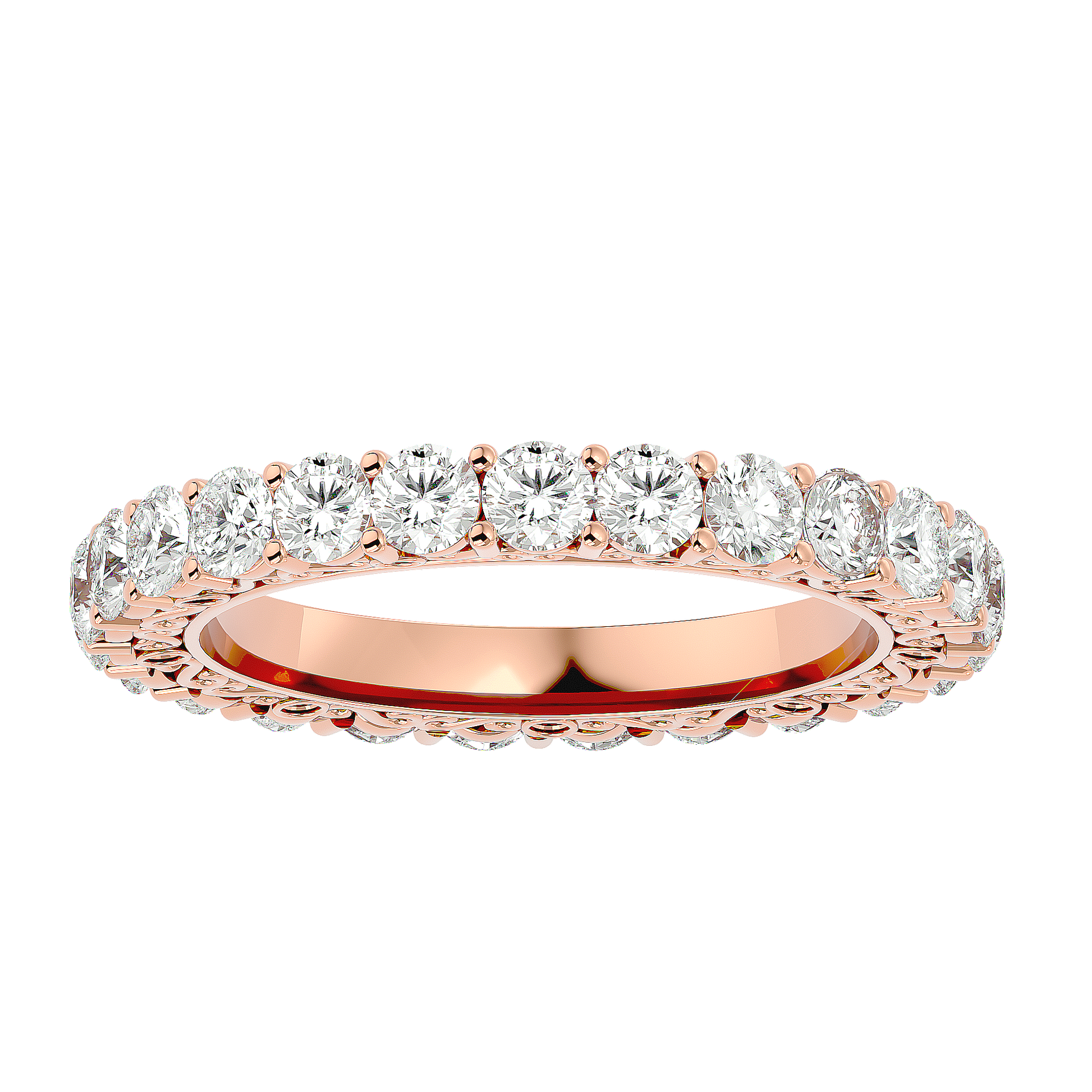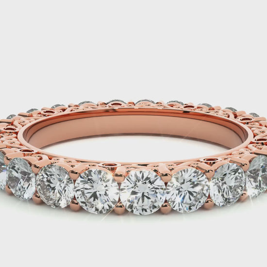Experience the warm, angelic glow of the Seraphine Band — a refined fusion of heavenly elegance and contemporary fine-jewelry craftsmanship. Fashioned in radiant 18 kt (or 14 kt) rose gold, this eternity band showcases 0.3 ct of hand-selected, precision-cut diamonds arranged in a seamless, continuous circle. Each stone is prong-set with meticulous care, forming a clean, sculptural silhouette, while the softly blushed rose-gold finish enriches every facet with a gentle, seraphic radiance.