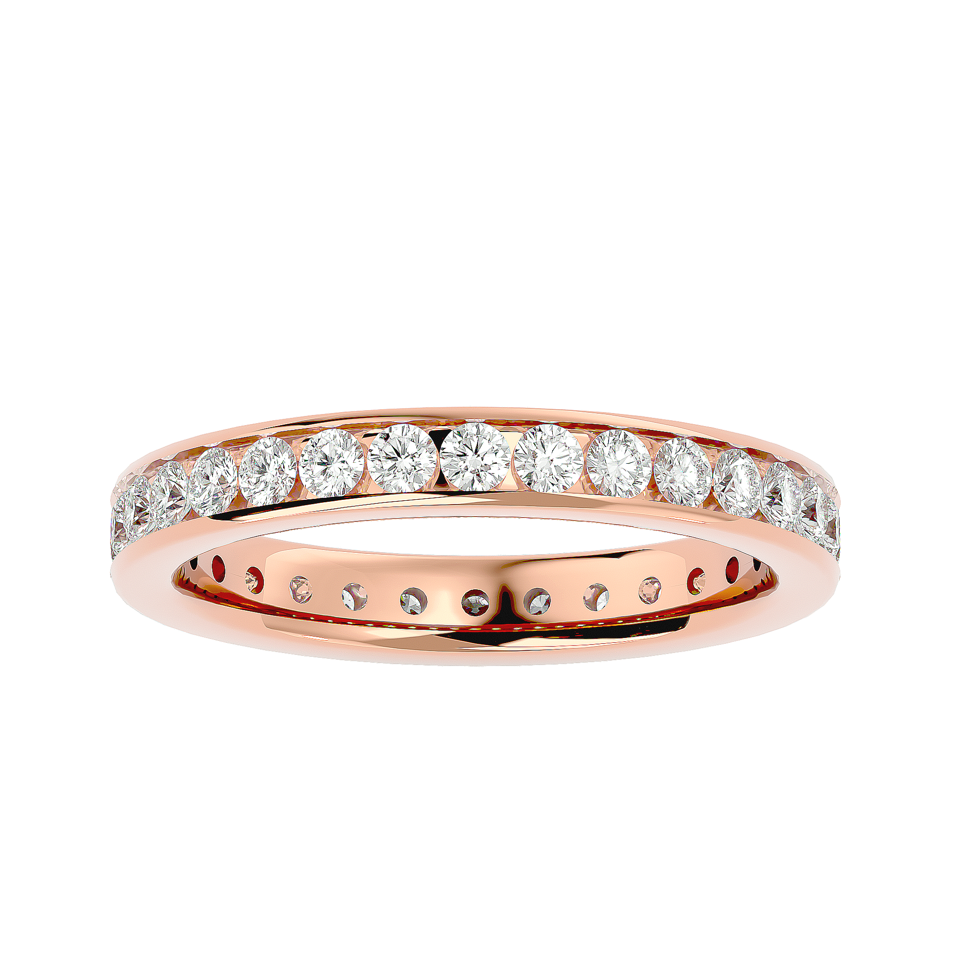 Experience the warm, nature-inspired glow of the Silverleaf Circle — a refined fusion of organic elegance and contemporary fine-jewelry craftsmanship. Fashioned in radiant 18 kt (or 14 kt) rose gold, this eternity band features 0.3 ct of hand-selected, precision-cut diamonds arranged in a seamless, continuous circle. Every stone is prong-set with meticulous care, forming a clean, sculptural silhouette, while the softly blushed rose-gold finish enriches each facet with a gentle, leaf-lit brilliance.