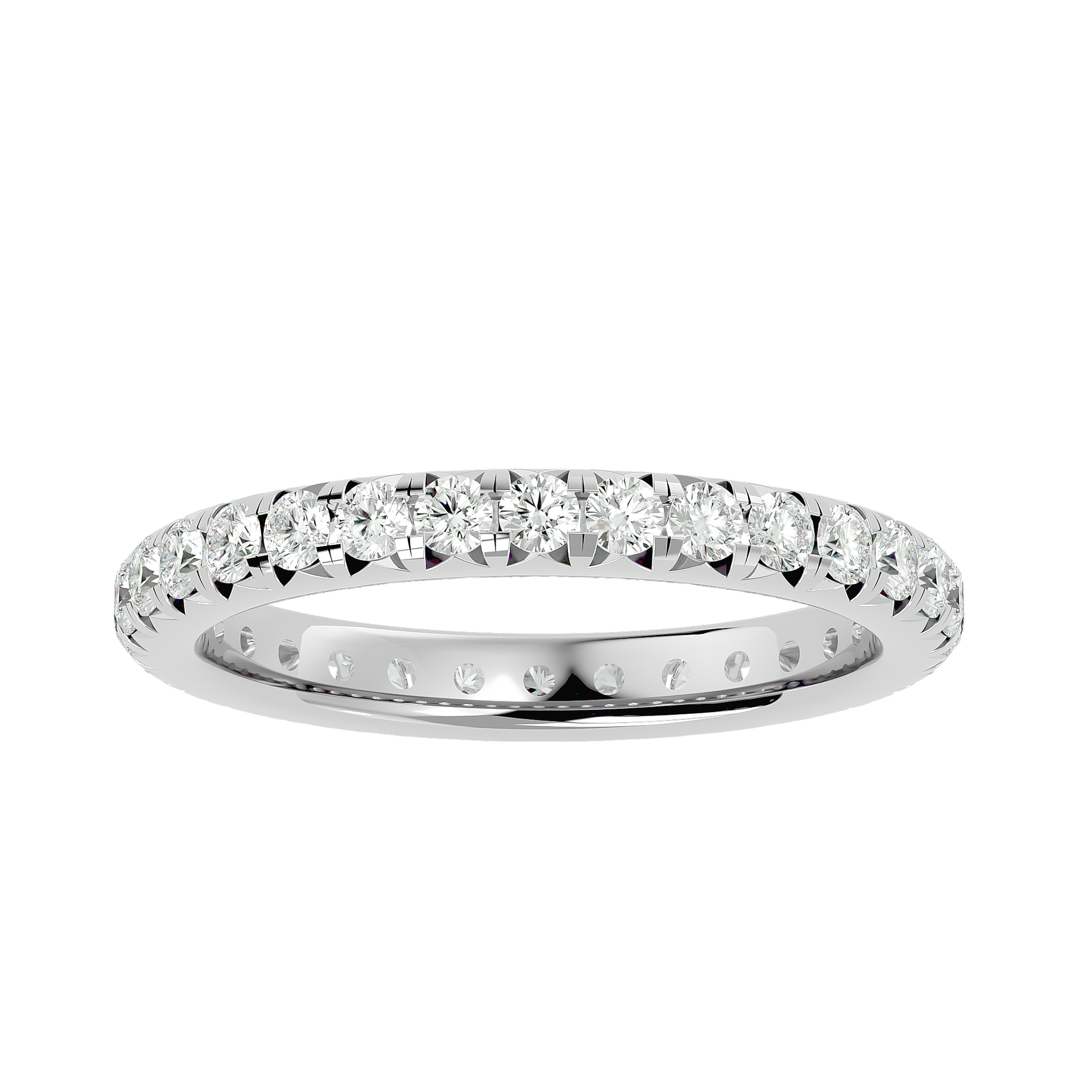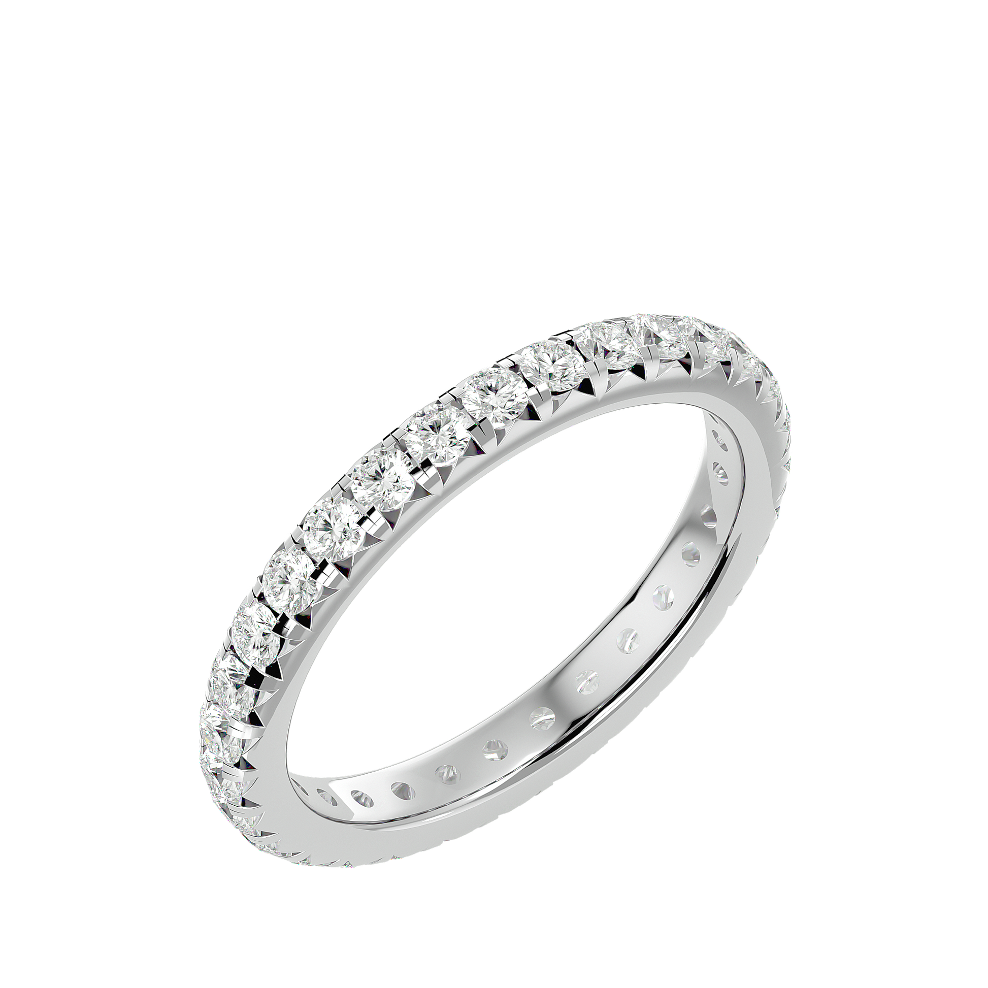 Experience the radiant warmth of Solara Crest — a refined blend of luminous elegance and contemporary fine-jewelry craftsmanship. Fashioned in gleaming 18 kt (or 14 kt) white gold, this eternity band features 0.3 ct of hand-selected, precision-cut diamonds arranged in a flawless, continuous circle. Each stone is prong-set with meticulous care, creating a clean, sculptural silhouette, while the polished white-gold finish enhances every facet with a bright, sun-inspired glow.