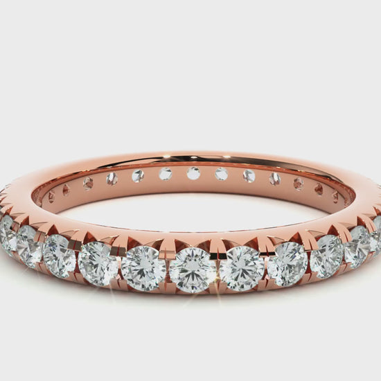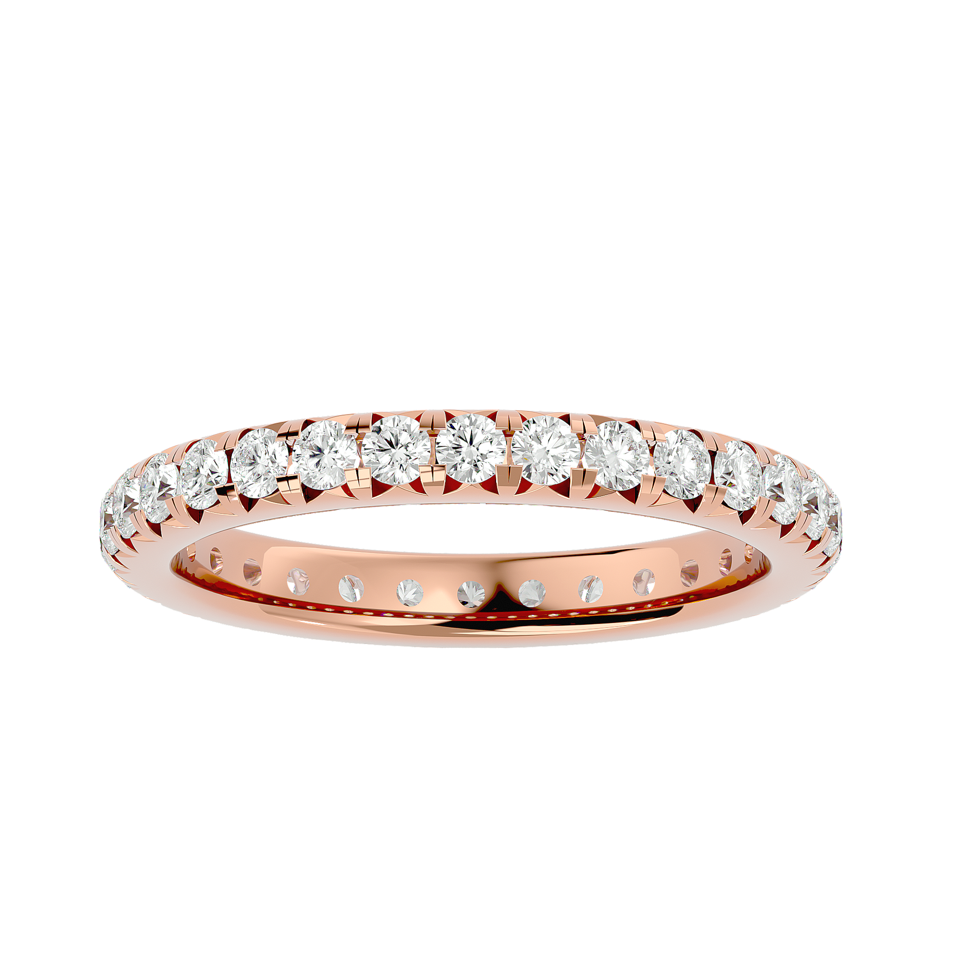 Experience the warm, sunrise-touched glow of Solara Crest — a refined fusion of radiant elegance and contemporary fine-jewelry craftsmanship. Fashioned in luminous 18 kt (or 14 kt) rose gold, this eternity band showcases 0.3 ct of hand-selected, precision-cut diamonds arranged in a seamless, continuous circle. Each stone is prong-set with meticulous care, forming a clean, sculptural silhouette, while the softly blushed rose-gold finish enriches every facet with a gentle, solstice-inspired brilliance.