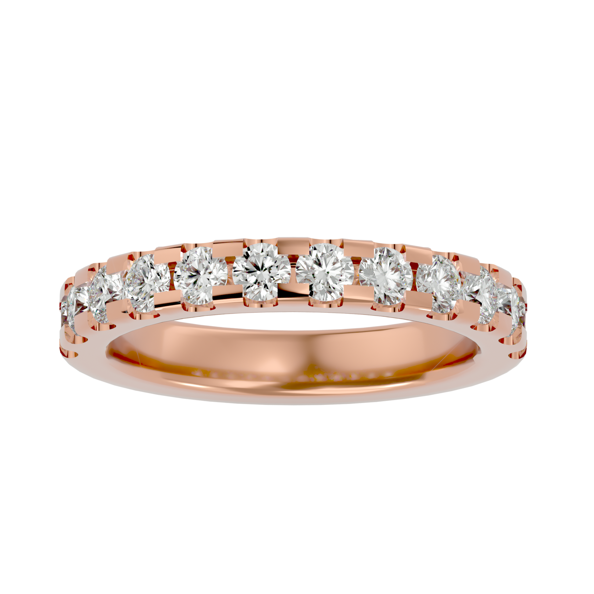 Experience the warm, luminous majesty of the Sovrène Luminique Band — a refined fusion of sovereign elegance and contemporary fine-jewelry craftsmanship. Fashioned in radiant 18 kt (or 14 kt) rose gold, this eternity band features 0.3 ct of hand-selected, precision-cut diamonds arranged in a seamless, continuous circle. Each stone is prong-set with meticulous care, forming a clean, sculptural silhouette, while the softly blushed rose-gold finish enriches every facet with a gentle, light-borne brilliance.