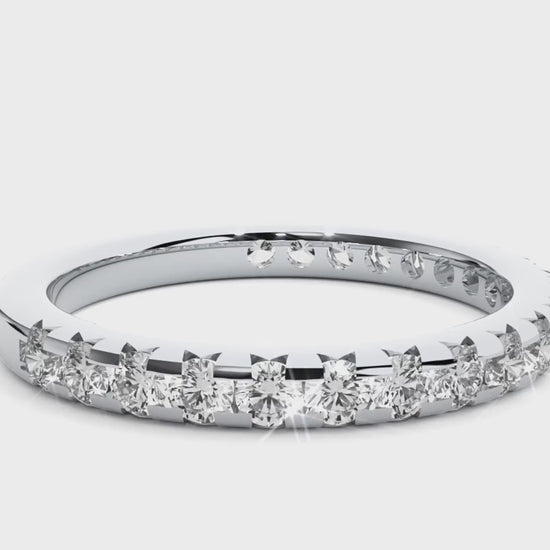 Experience the ethereal brilliance of Celestique Halo — a refined harmony of celestial elegance and contemporary fine-jewelry craftsmanship. Fashioned in radiant 18 kt (or 14 kt) white gold, this eternity band features 0.3 ct of hand-selected, precision-cut diamonds arranged in a seamless, continuous circle. Each stone is prong-set with meticulous accuracy, creating a clean, sculptural silhouette, while the polished white-gold finish enhances every facet with a soft, halo-lit glow.