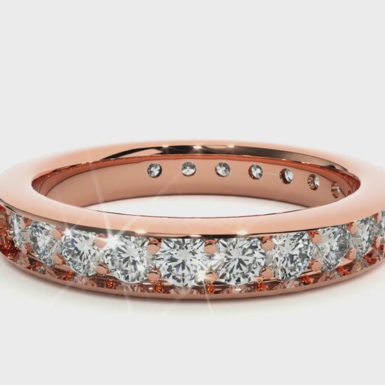 Experience the warm, faceted glow of The Crystalbourne Band — a refined fusion of crystalline elegance and contemporary fine-jewelry craftsmanship. Fashioned in radiant 18 kt (or 14 kt) rose gold, this eternity band showcases 0.3 ct of hand-selected, precision-cut diamonds arranged in a seamless, continuous circle. Each stone is prong-set with meticulous care, forming a clean, sculptural silhouette, while the softly blushed rose-gold finish enriches every facet with a gentle, crystal-lit brilliance.