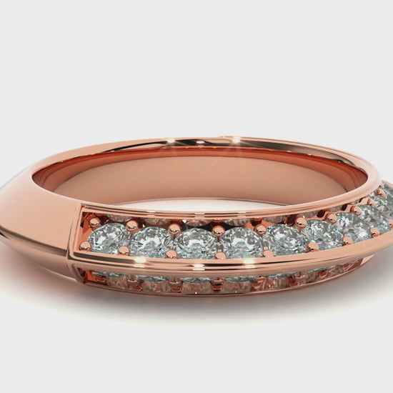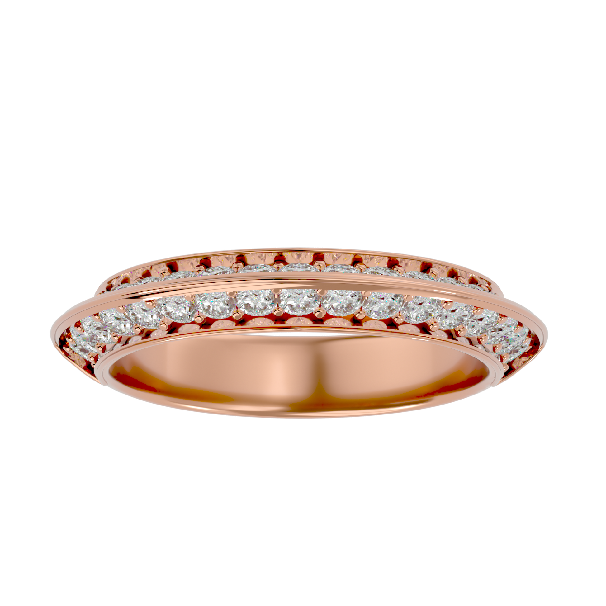 Experience the warm, quietly commanding glow of Valora — a refined fusion of modern elegance and timeless fine-jewelry craftsmanship. Fashioned in radiant 18 kt (or 14 kt) rose gold, this eternity band showcases 0.3 ct of hand-selected, precision-cut diamonds arranged in a seamless, continuous circle. Each stone is prong-set with meticulous care, creating a clean, sculptural silhouette, while the softly blushed rose-gold finish enriches every facet with a gentle, valor-inspired brilliance.