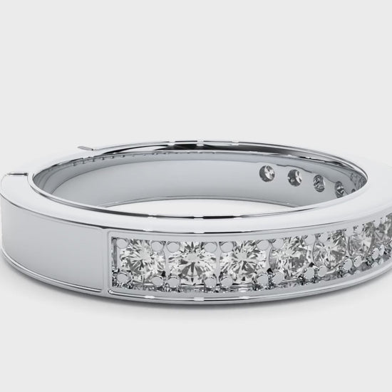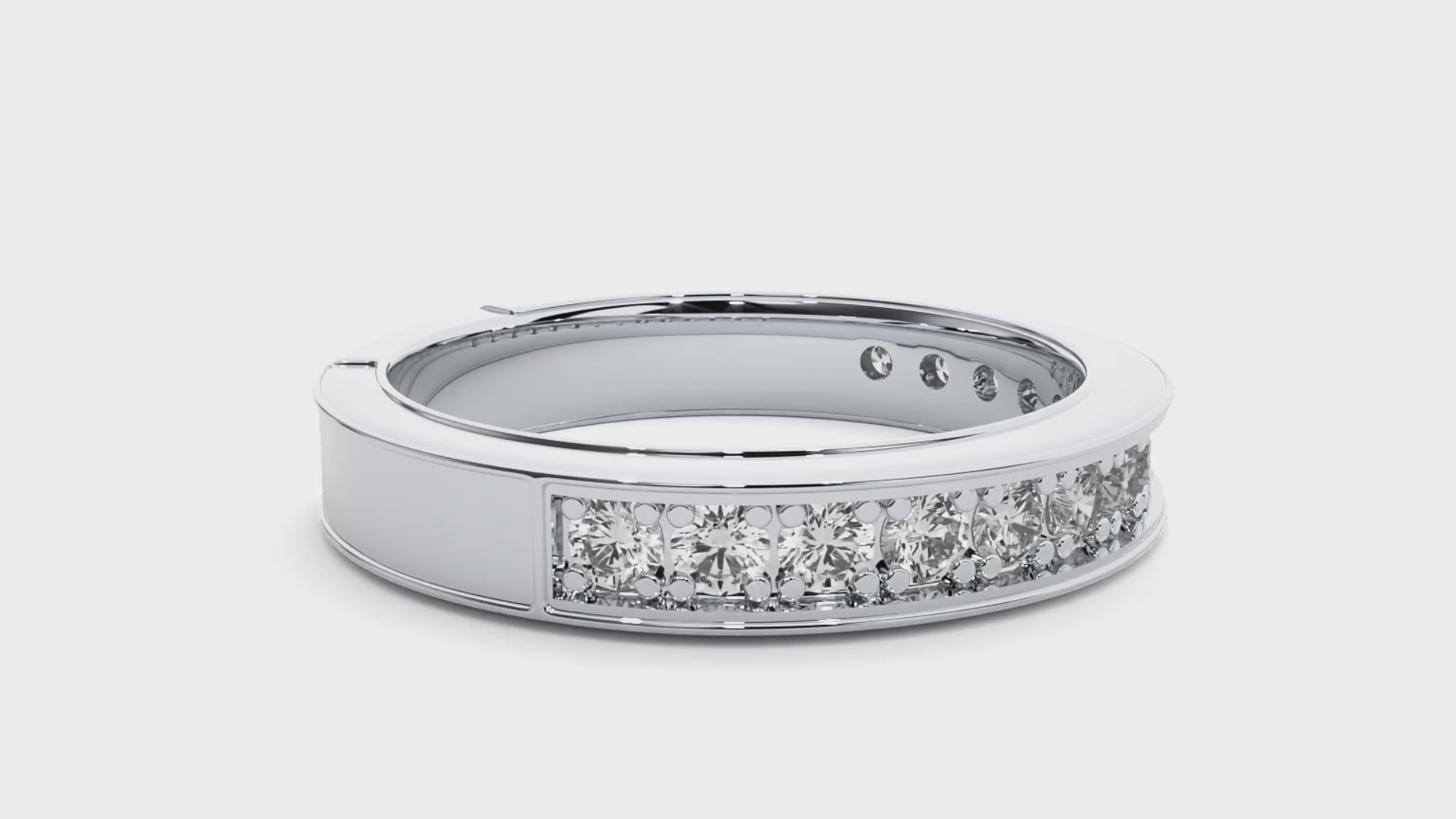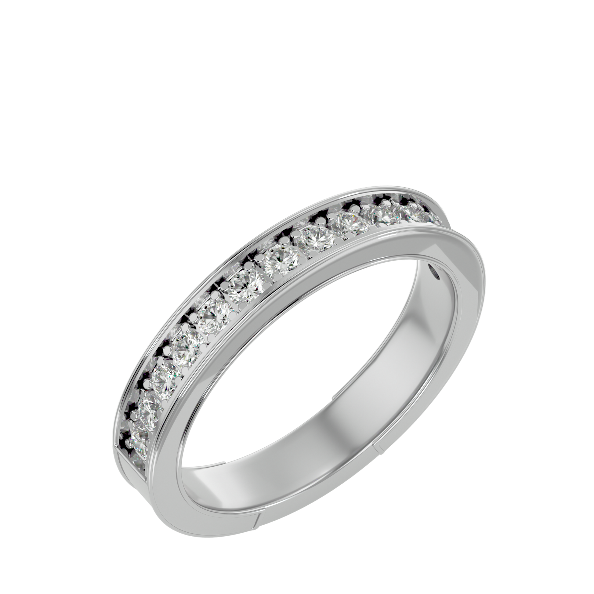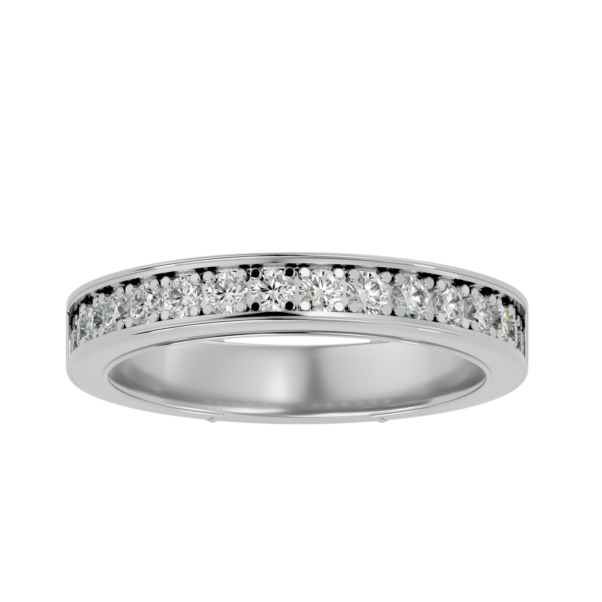 Experience the nocturnal elegance of Midnight Florentine — a refined union of moonlit charm and contemporary fine-jewelry craftsmanship. Fashioned in radiant 18 kt (or 14 kt) white gold, this eternity band showcases 0.3 ct of hand-selected, precision-cut diamonds arranged in a seamless, continuous circle. Each stone is prong-set with meticulous care, forming a clean, sculptural silhouette, while the polished white-gold finish enhances every facet with a soft, midnight-bloom glow.